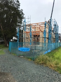 私の「もう雨雲去るのであと少しです!」の呼びかけは外れ続けて とうとう「雨止みます詐欺師」のようになってしまった現場でしたが、少しずつ出来上がっていくお家を楽しみに見て下さるお施主様ご家族の笑顔に後押しされて、本当に職人さん達最後まで頑張ってくれました!